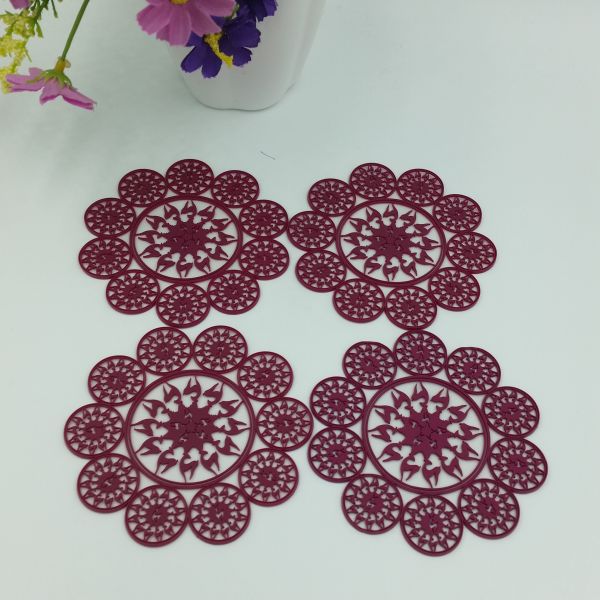 Elegant Purplish Red Hollow Silicone Rubber PVC Coaster Table Placemat, Flower Design Consist Of Deer, Accept Paypal